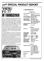 The Yaesu FT-77 is a fixed or mobile radio that receives and transmits in CW, SSB, or FM (optional) modes on the amateur frequency bands. The FT-77 was released shortly after the FT-707, but unlike the 707, it features a single-conversion superheterodyne receiver instead of a triple-conversion one, which becomes double-conversion with the FM option installed. The FT-77 features digital tuning with a six-digit display, and operation is performed on 11 500 kHz segments of the HF bands dedicated to amateur radio (80 to 10 meters). These segments are selected with a switch on the right side of the front panel. The Intermediate Frequency is 8.9875 MHz, but if the FM card is installed, a second IF is available at 455 kHz. Receive sensitivity is 0.3 µV in SSB/CW (0.15 µV with the optional CW filter installed), and if the FM card is installed, sensitivity in this mode is 0.7 µV. Selectivity is 2.4 kHz in SSB, 600 Hz (CW-N) with the optional filter installed, and 12 kHz in FM with the optional card installed. In addition to the FM card, the CW filter type XF.8.9 KC and the Marker card were also available as options. This is activated by the Mark button located on the front panel and generates an unmodulated signal every 25 kHz on all ranges covered by the device. In transmission, the FT-77 is not much inferior to the 707. The RF power amplifiers are very similar, using two 2SC2395 transistors driving a pair of 2SC2290 transistors. Antenna power is 100 W per unit area in CW and SSB modes (slightly less on 10 meters for the FT-77) and 50 W in FM (optional). The microphone impedance is 500/600 ohms. The power supply requires a DC voltage of 13.8 VDC and a current of 20 A in TX full power, values that can be supplied by the Yaesu FP-700 power supply, another power supply capable of supplying 20 A or by a car battery. The receive power consumption is 1 A, the audio output is 3 watts, and the speaker has an impedance of 4 ohms. The dimensions of the FT-707 are: 9.45 x 3.74 x 11.81 inches, and it weighs 13.2 lb. The FT-77 was my first modern transceiver, which I purchased used in the late 1980s. I made numerous DX contacts with this transceiver and a old Hi-Gain 14 AVQ vertical antenna. İ IK3HIA, 2004 - 2025 |