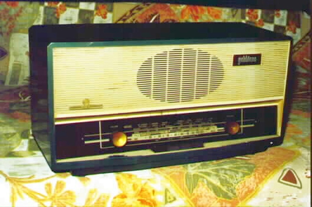 Ricevitore supereterodina con ricezione di Onde Medie, Modulazione di Frequenza e l'audio TV suddiviso in due gamme VHF. La radio utilizza sei valvole della serie miniatura noval: ECC85, ECH81, EF89, EABC80, EL84, UY85. La Frequenza Intermedia in AM č a 468 kHz, la FI in FM č a 10,7 MHz. La commutazione di gamma avviene tramite una pulsantiera a 4 tasti: OM, TV1, MF, TV2. I vari componenti del circuito sono montati su un circuito stampato. Il mobile č in plastica bicolore con la scala parlante rettangolare sulla parte bassa del frontale. L'altoparlante č magnetodinamico con forma ellittica. Le due manopole del volume e della sintonia sono poste rispettivamente a sinistra e a destra della scala parlante mentre la pulsantiera č nel mezzo. La radio č alimentatala con rete elettrica tramite un autotrasformatore, pertanto uno dei capi della rete č connesso al telaio. La tensione di rete č selezionabile tra: 120, 140, 160, 180 e 220 Vac. Le dimensioni della radio sono: 38 x 20 x 17 cm e il peso č di 3 kg. IK3HIA © 2016 - 2025. |