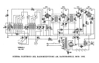 Superheterodyne receiver from the Fido series produced by Radiomarelli in the mid-1950s. The radio was small but capable of receiving six wavebands. The RD150 could tune roadcasting and five short wave bands, with the various bands selected using the switch knob on the right side of the cabinet. The RD150X used five miniature seven-pin vacuum tubes with heaters connected in series: the 12BE6 was the converter, the 12BA6 was the IF amplifier, the 12AT6 was the audio preamplifier, the 50B5 was the audio power amplifier, and the 35W4 was the rectifier. The receiver's IF resonates at 455 kHz. Power was supplied via an autotransformer from the mains, so the chassis was connected to one end of the network and dangerous to touch. Mains voltages should be 110, 125, 140, 160, and 220 VAC. The cabinet of the model I own is made of cream-colored plastic with volume and tuning controls on the front, either side of the dial. Its dimensions are 9.4 x 5.5 x 4.3 inches, and its weight is 4 lb 10 oz. IK3HIA © 2016 |