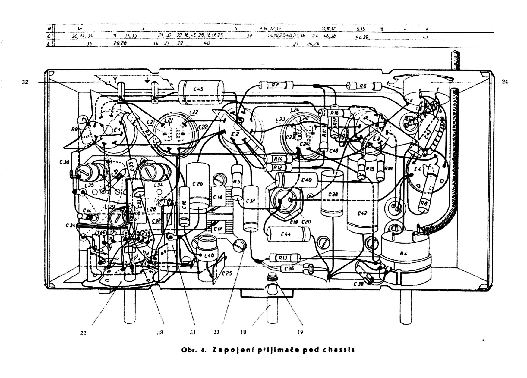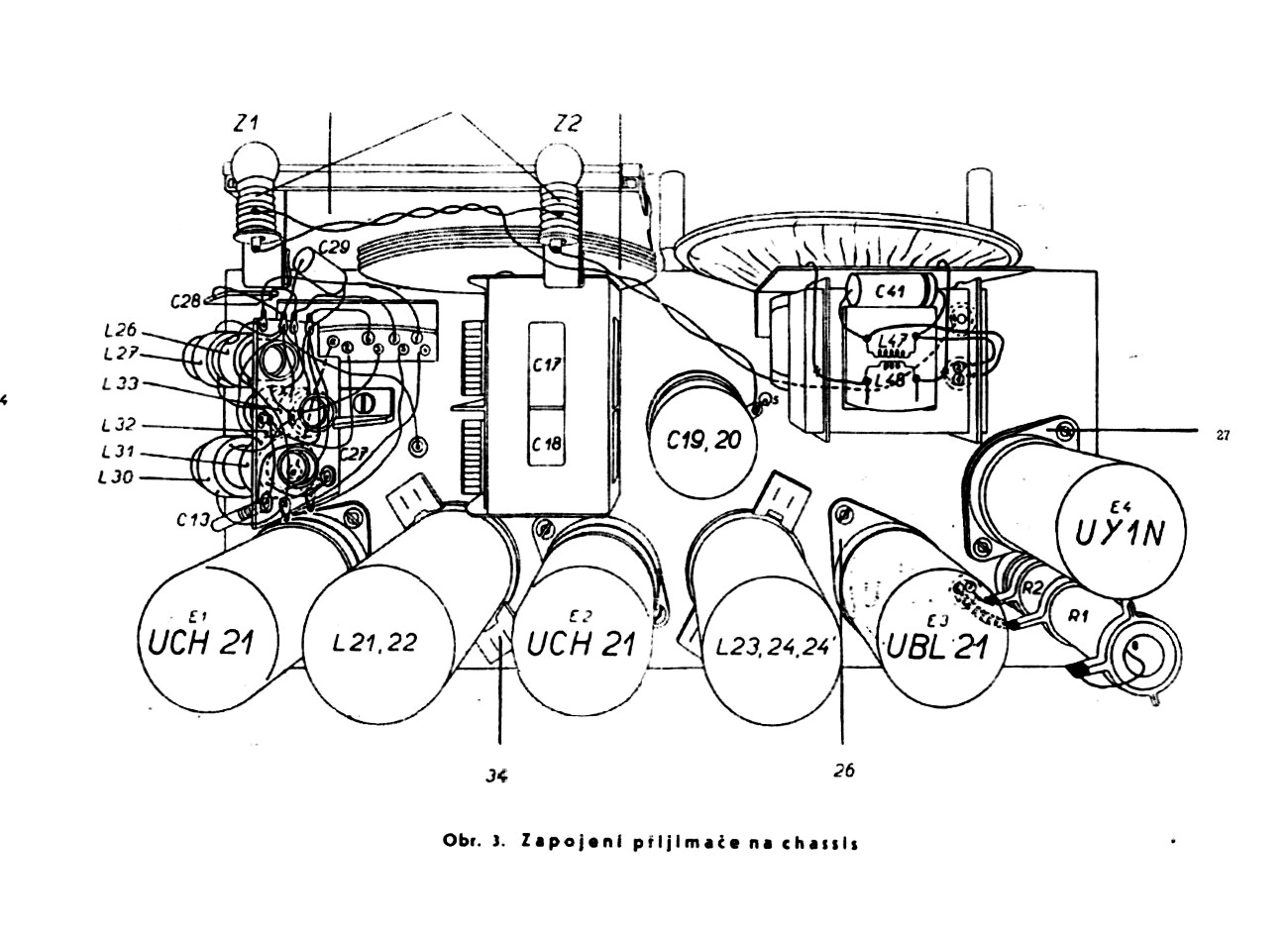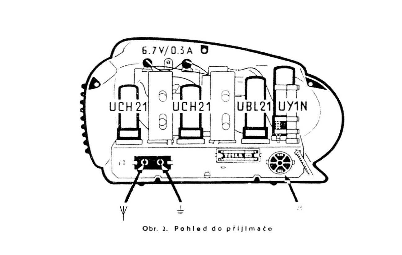 Czechoslovakian superheterodyne receiver produced in large numbers in the early 50s. It could receive Long Waves (1000 - 2000 m), Medium Waves (187 - 571 m) and Short Waves (16.5 - 51,5 m). The valves used are 4: UCH21, UCH21, UBL21, UY1N. The intermediate frequency is 452 kHz. The cabinet is made of dark brown plastic with horizontal elements in white plastic, the dial is square and the knobs are white. The speaker is of the magnetodynamic type with a diameter of 3.9 inch. The radio is powered by the mains without a power transformer but through large resistors selectable with jumpers for voltages of 220 and 120 Vac. The dimensions are: 10.4 x 6.1 x 6.3 inch IK3HIA © 2004 - 2025. |