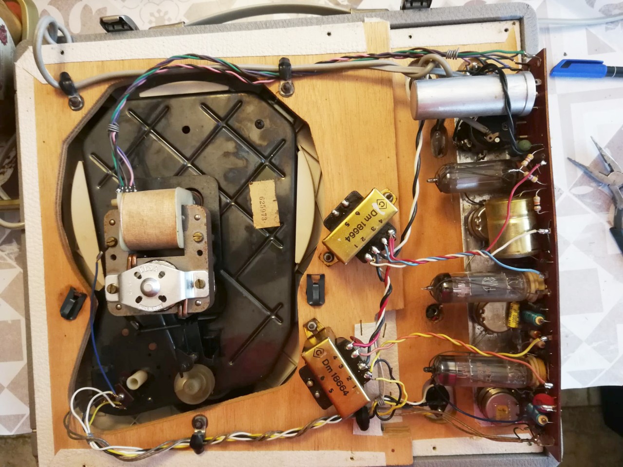 ![]() RCA Italiana was a subsidiary of RCA Corporation USA, was founded in 1949, and had its factory on Via Triburtina in Rome. In addition to operating as an independent record company, pressing and selling audio records, RCA Italiana also had a division that manufactured and marketed radios and turntables in Italy. The RCA LH17 was a stereo suitcase recorder released in the early 60s for listening to audio records with playback speeds of 16, 33, 45, and 78 rpm. The suitcase recorder was equipped with a piezoelectric pickup head with a two-position rotating stylus, allowing the user to select the stylus for the old 78 rpm shellac resin records still in use, or the thinner one for 16, 33, or 45 rpm microgroove vinyl records. The sound from the pickup head was amplified by a Lesa stereo tube amplifier using two UCL82 tubes (a triode-pentode with heather at 50 VAC) and a UY85 half-wave rectifier with heather at 38 VAC. The output power was 3.2 watts per channel. The lid of the suitcase recorder was divided into two detachable parts, each housing a 3.2-ohm magnetodynamic speaker. These were connected to the amplifier via two two-core cables with connectors type DIN 41529. The suitcase record player was equipped with the following controls: the volume (LOUDNESS) potentiometer with the power on switch, the TREMBLE control, the BASS control, and the BALANCE control. Power was supplied from the mains, with a voltage selector switch for 125, 160, and 220 VAC. The amplifier was assembled on a Lesa 20371 printed circuit board, and the AC synchronous motor that turned the turntable platter was also Lesa. The three tubes were secured to the sockets with steel springs to prevent them from slipping during transport or due to jolts. The turntable was mounted on spring-loaded elastic supports, but to prevent damage during transport, it could be secured to the suitcase by tightening the two large screws located on the turntable deck between the platter and the tonearm. The LH17 in my possession was in working order, and the restoration was straightforward. I fixed a problem with the piezoelectric headshell mount and, to be safe, I replaced all the electrolytic capacitors. Afterward, I placed an old Los Bravos 45 on the platter, started playback, and with a shiver I immediately went back sixty years in time. I checked the rotation speed with the strobe disc, and then I listened with the same emotion a 1969 Credence Clearwater Revival 33 rpm record. At the time this RCA suitcase record player was released, similar transistor-based equipment was already on the market, but tube technology was preferred because it was considered less expensive, proven, and more reliable, and replacement parts were easy to find. The LH17's dimensions were 13.4 x 15.7 x 3.7 inches, and it weighed 7 lb 11.3 oz. IK3HIA © 2025. |