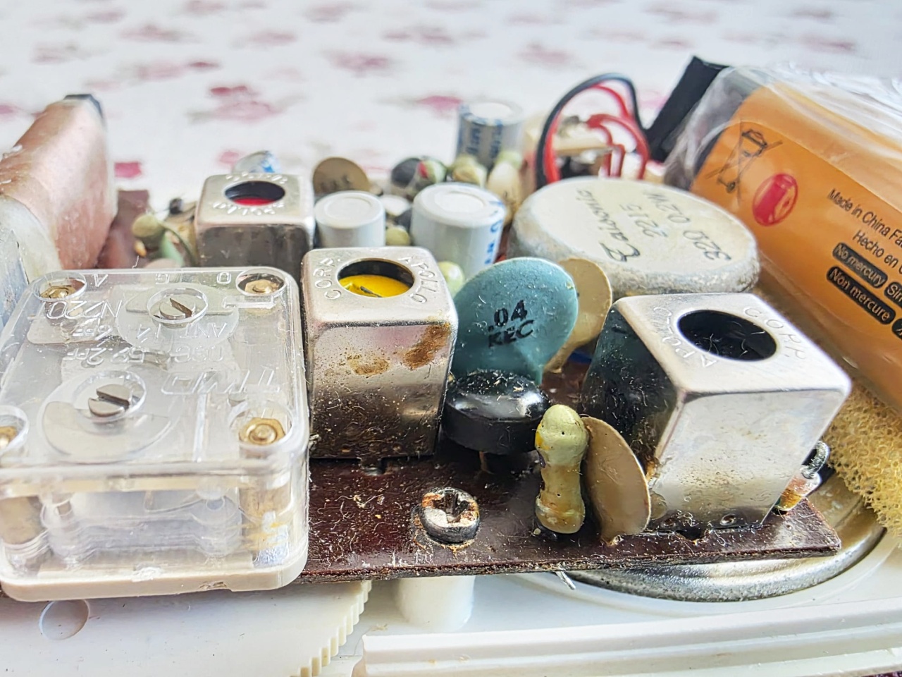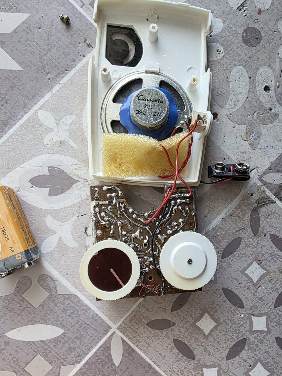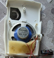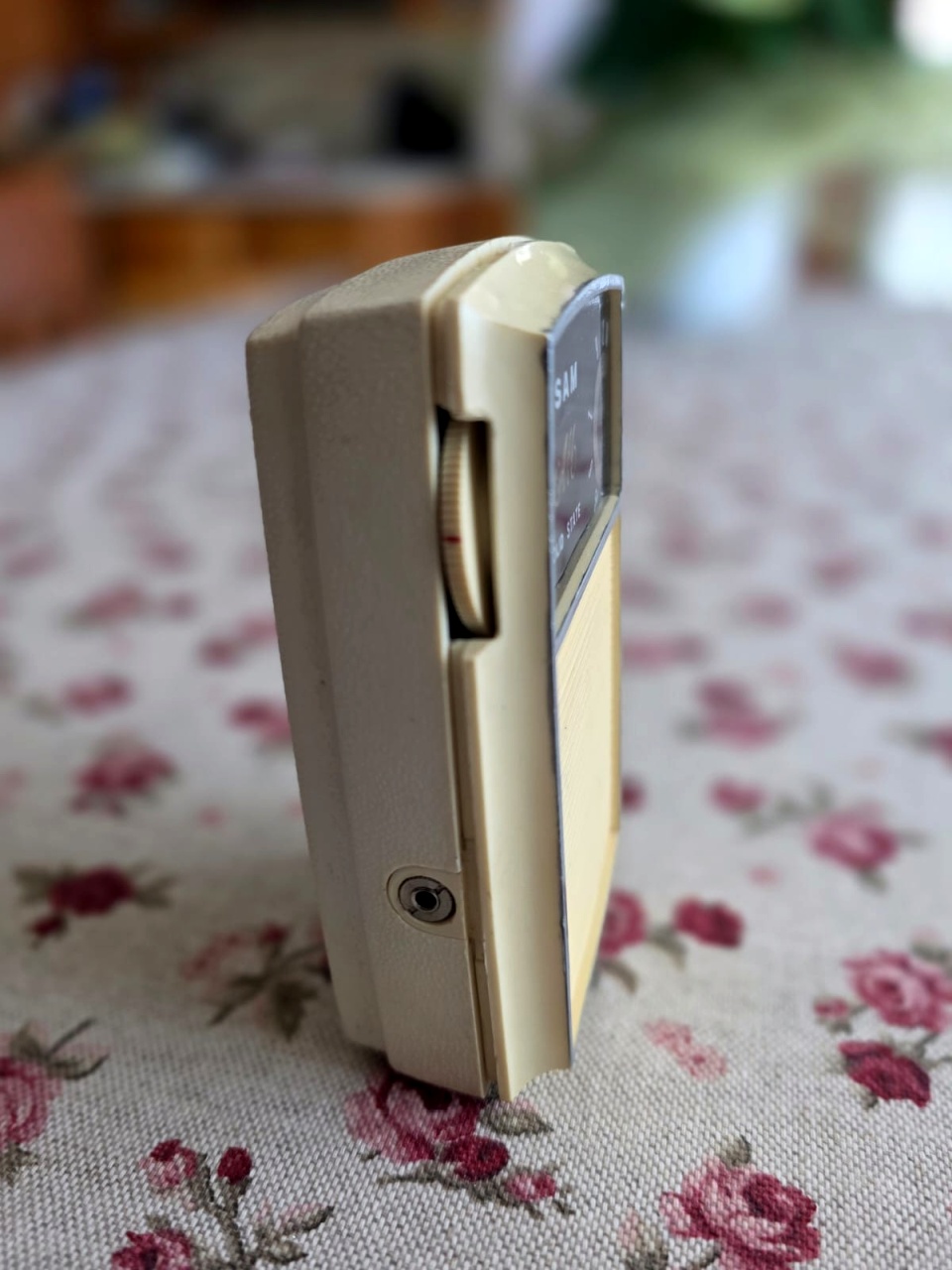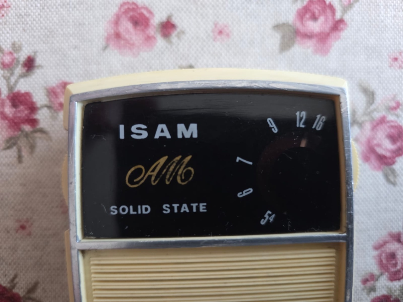 Pocket transistor receiver manufactured under the Isam brand in Taiwan (Republic of China) in the 1970s. The radio receives the Medium Wave band (540 to 1600 kHz) and uses five unbranded silicon transistors. The antenna is wound on a ferrite core, with the IF frequency at 455 kHz. The audio stage is a complementary symmetrical type with a 0.2 W output power on a 2.165 in magnetodynamic speaker with 32 Ohm of impedance. The radio's cabinet is made of plastic with a round dial, and the tuning knob with the index is on the right side of the cabinet and is directly aligned with the variable capacitor axis without a gear reduction. The power/volume knob is on the left side, where the earphone jack is also located lower down. The radio is powered by a 9V 6F22 dry cell battery (a 6LR61 alkaline battery will also work). The Isam AM measures are: 2.95 x 4.33 x 1.29 inches, and weighs is 5.4 oz without the battery. The model I own is still in working order, a full fifty years after its production. The only work I had to do was clean the scratchy volume potentiometer with deoxidizing spray, but all the other components, including the electrolytic capacitors, are still original. IK3HIA © 2026. |