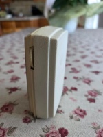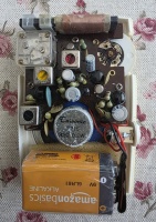 State - Taiwan (TW) ~ 1975.Ricevitore a transistor tascabile prodotto con il marchio Isam a Taiwan (Repubblica di Cina) negli anni '70. La radio riceve la banda delle Onde Medie (da 540 a 1600 kHz) e utilizza cinque transistor al silicio che non riportano alcuna sigla. L'antenna è avvolta su un nucleo di ferrite, Frequenza Intermedia a 455 kHz. Lo stadio audio è a simmetria complementare con potenza d'uscita di 0,2 W su altoparlante magnetodinamico da 5,5 cm / 2.165 in con impedenza di 32 Ohm. Il mobiletto della radio è in plastica con scala parlante rotonda e la manopola di sintonia con l'indice è sul lato destro del mobile ed è direttamente calettata sull'asse del condensatore variabile senza demoltiplica. La manopola interruttore/volume è sul lato sinistro, dove più in basso si trova anche la presa jack per l'auricolare. L'alimentazione della radiolina avviene tramite una pila a secco tipo 6F22 da 9V (va bene anche un'alcalina tipo 6LR61). Le dimensioni della Isam AM sono: 7,5 x 11 x 3,3 cm / 2.95 x 4.33 x 1.29 e il peso è di 152 g / 5.4 oz senza la batteria. L'esemplare in mio possesso è risultato ancora funzionante dopo ben cinquant'anni dalla sua produzione. L'unico intervento che ho dovuto effettuare è stato quello di pulire con lo spray disossidante il potenziometro del volume che "grattava", ma tutti gli altri componenti, condensatori elettrolitici compresi, sono ancora quelli originali. IK3HIA © 2026. |
