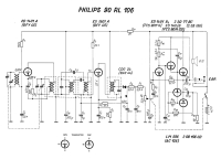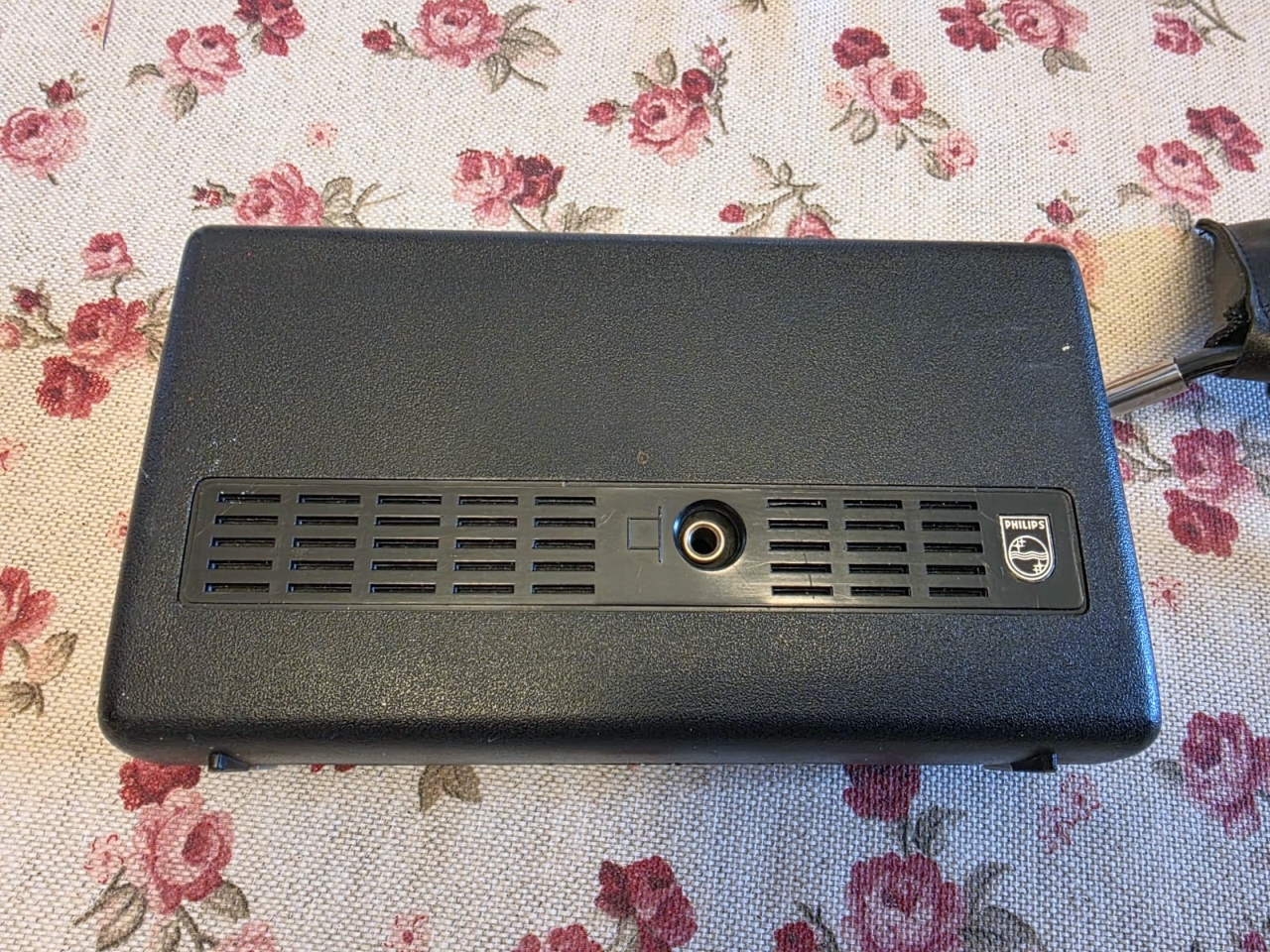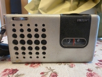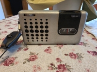 Philips 90RL106 - Philips, Eindhoven - Netherlands (NL) ~1972.The 90RL106 is a portable superheterodyne receiver produced in the early 1970s by Philips in Netherlands and other European countries. The radio receives the Broadcasting with range from 520 to 1630 kHz. The receiver uses seven transistors: ED1501A, ED1501B2, ED1401B1, ED1401B, LM596, 2SD77BC, and 2SB156CD. The antenna is wound on a ferrite core, and the IF (intermediate frequency) resonates at 460 kHz. The magnetic-dynamic speaker has an impedance of 8 ohms. The cabinet is made of plastic with the dial on the right side of the front panel. The power/volume knob is on the top left, while the tuning knob is on the top right of the front panel. The radio comes with a carrying strap and a pouch containing the earphone, which can be connected to the jack accessible on the rear panel. The 90RL106 requires three UM3 (AA) 1.5V dry cell batteries for a total of 4.5 VDC. Dimensions are 5.7 x 3.2 x 1.5 inches, and the weight without batteries is 0 lb 7 oz. IK3HIA © 2026. |