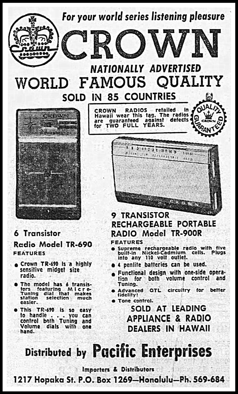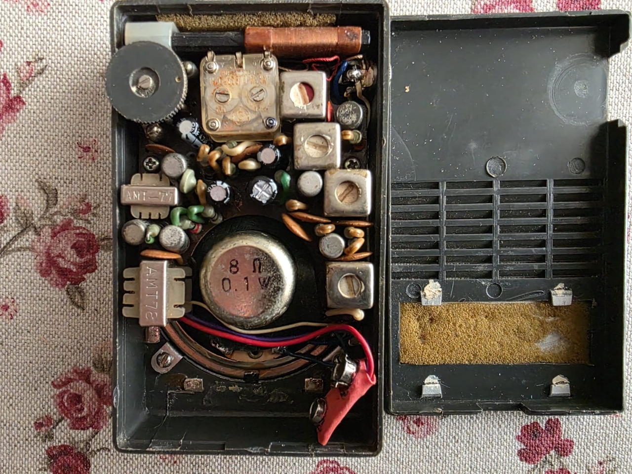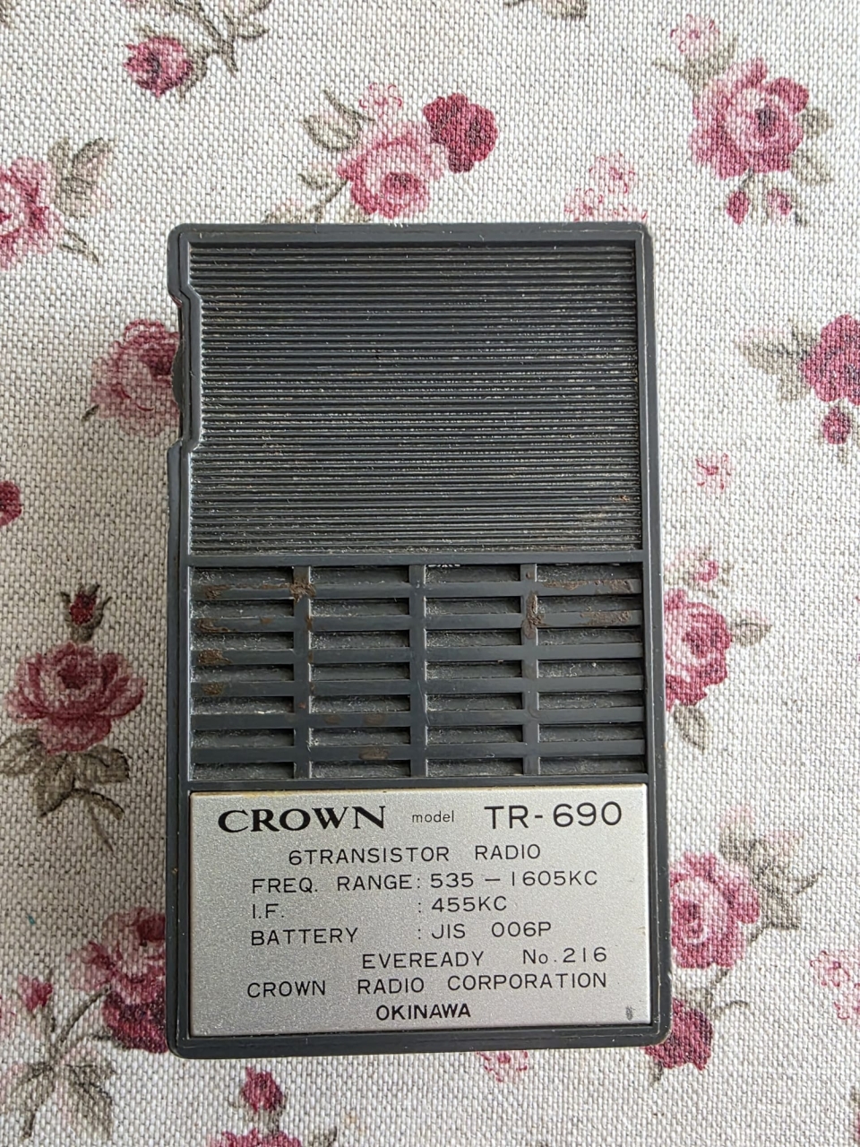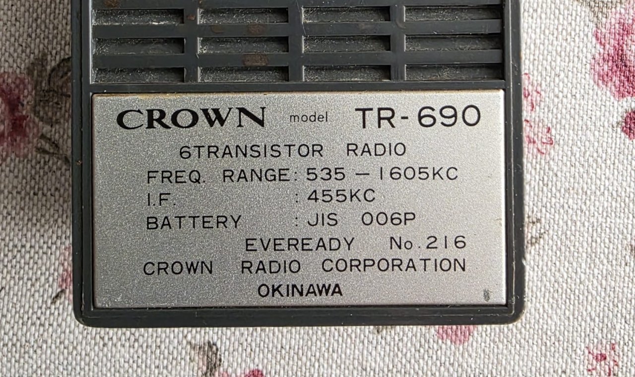 Crown Radio Corp. Okinawa, Japan ~1961.Radio tascabile con ricezione delle Onde Medie prodotto in Giappone dalla Crown Radio Corp. all'inizio degli anni '60. La radio riceve le gamme AM (da 535 a 1605 kHz) con circuito supereterodina che utilizza sei transistor al germanio (2SA102, 2SA101, 2SA101, 2SB171, 2SB172 e 2SB172) e un diodo al germanio. La Frequenza Intermedia risuona a 455 kHz. L'antenna è una bobina avvolta su un nucleo di ferrite piatto. Il cabinet è in plastica con la griglia frontale in metallo forato per l'altoparlante e i bordi cromati. La potenza audio in uscita è di 100 mW su un altoparlante magnetodinamico da Ø 5,5 cm e impedenza 8 Ohm. La scala parlante analogica della radio consiste in una finestrella sulla parte alta del frontale con a lato la manopola di sintonia. Siccome la radio veniva commercializzata negli USA all'inizio degli anni '60, sulla scala parlante erano serigrafati due triangolini in corrispondenza delle due frequenze del CONERAD, il sistema di allarme atomico USA. Per maggiori informazioni vedere qui la pagina relativa. Sempre sul lato destro del mobile, affiancata alla manopola della sintonia, c'è quella dell'interruttore-volume, sul lato opposto invece c'è la presa per l'auricolare. L'alimentazione è fornita da una batteria a secco da 9 Vcc (tipo 6F22 o Eveready N.216). Le dimensioni sono: 6 x 10,5 x 2,5 cm, e il peso è di 400 g senza la batteria. Per ripristinare il funzionamento della radio è stato sufficiente sostituire i quattro condensatori elettrolitici presenti nel circuito. Non avendo a disposizione lo schema elettrico ho dissaldato le quattro capacità originali e le ho sostituite con componenti moderni di simile valore ma con superiore tensione di isolamento. IK3HIA © 2026. |
